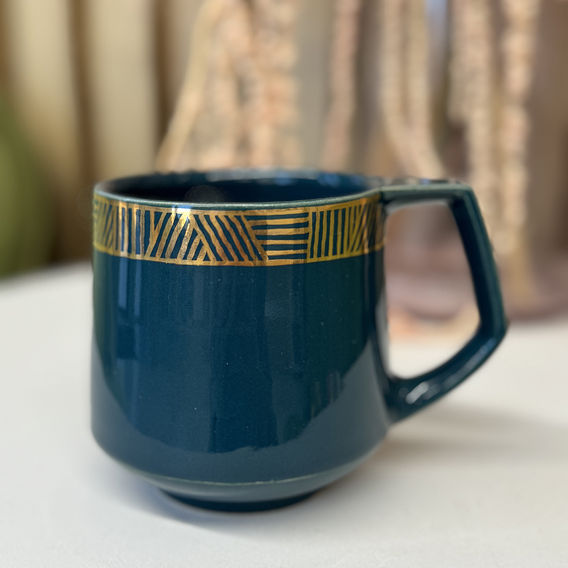 Кружка ручной работы вытянутая "Бирюза" с золотом, 350 мл Fabrica